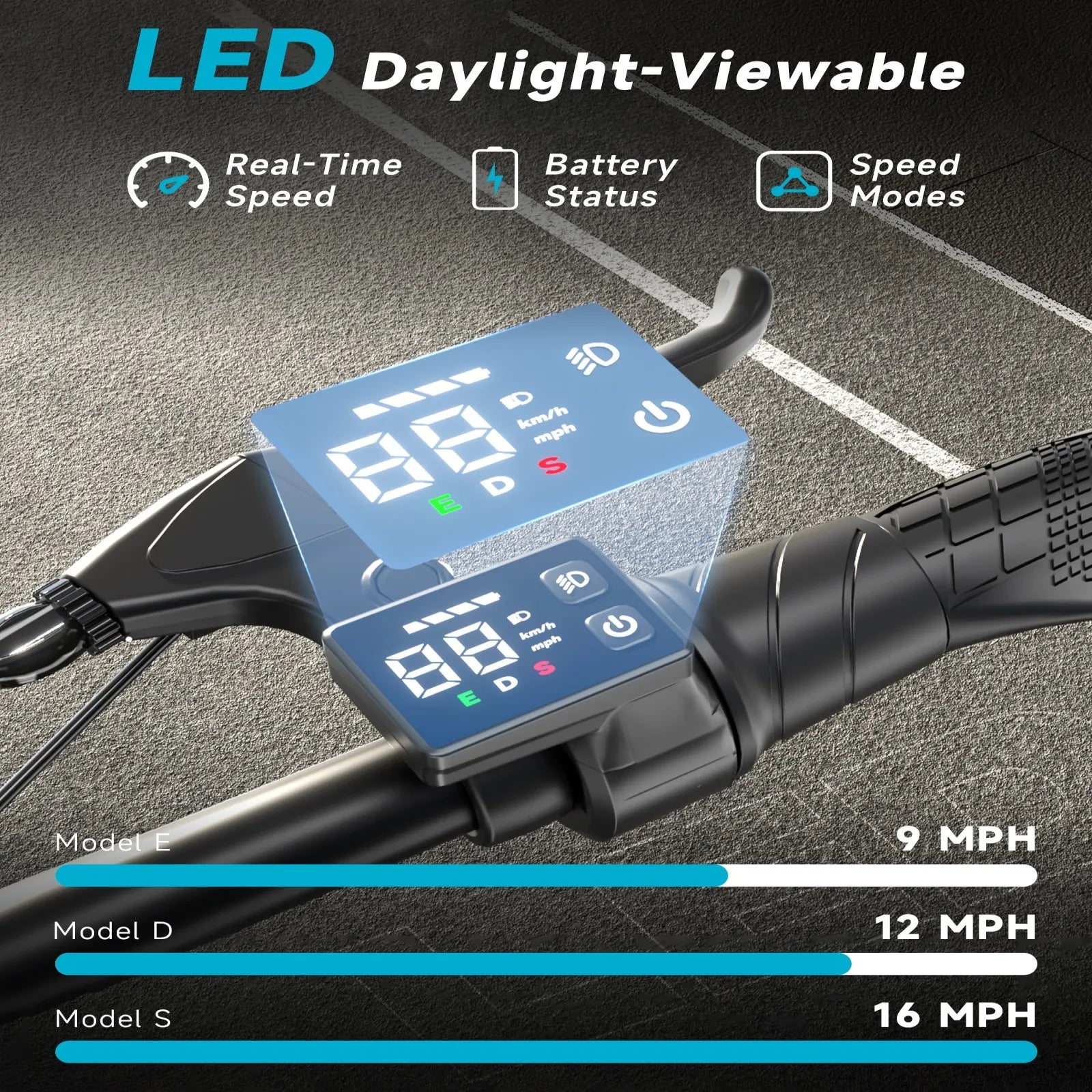 - LCD display lets you track speed, battery, and ride data at a glance, so you stay informed in real-time.
