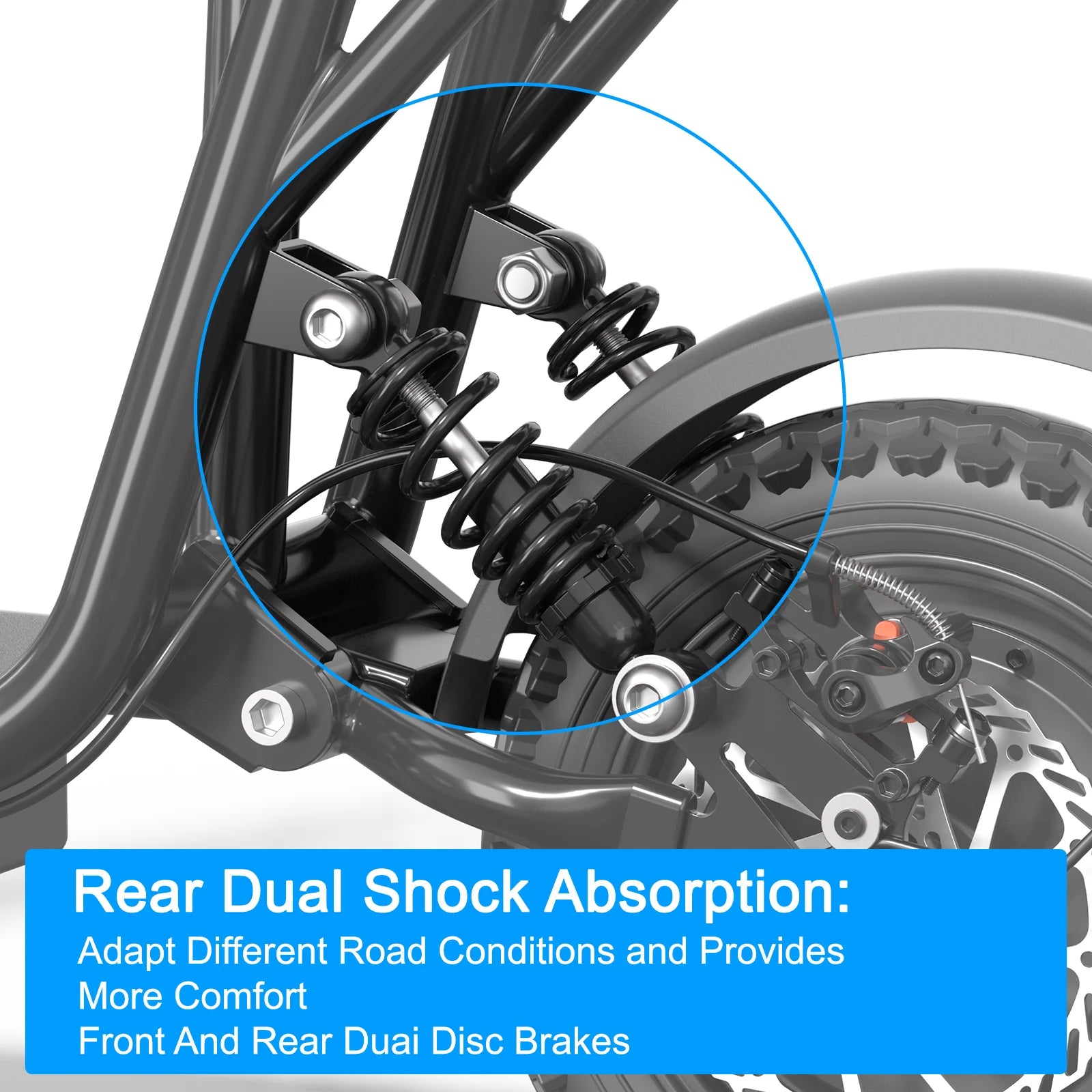 Dual Shock Absorption& Dual Braking System: The electric scooter with seat features a rear spring suspension system to ensure a smooth and comfortable ride on on different terrain. Besides, the front and rear brakes provide powerful stopping power to ensure safe rides. The electric scooter adults is perfect for daily commute and weekend rides.