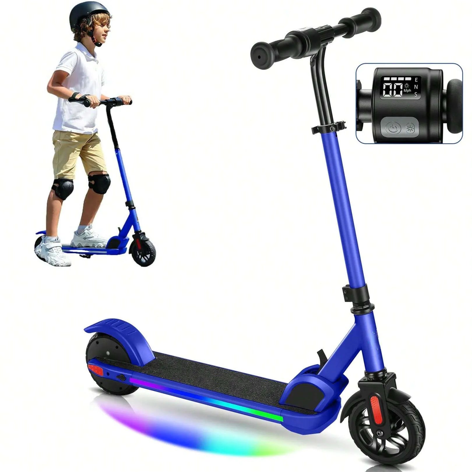 Ignite your child's adventures with a foldable, LED-lit electric scooter that grows with them.