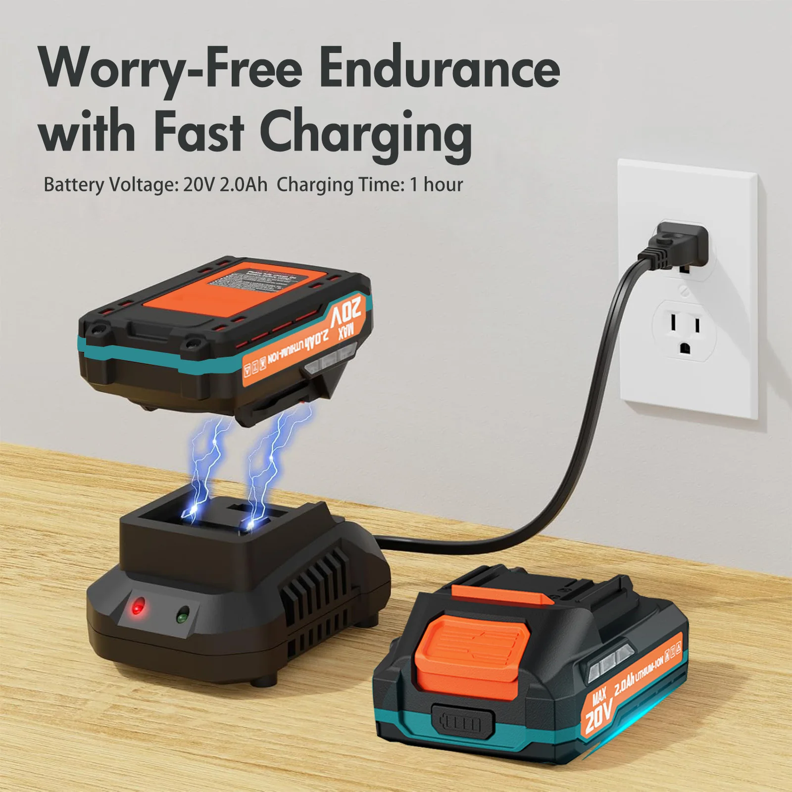 【Worry-Free Endurance with Fast Charging】Say goodbye to long waits with the built-in 1*20V 2.0Ah high-performance lithium battery, which quickly recharges in just one hour, keeping every cleaning task full of energy. Enjoy the fun of unrestricted cleaning, free from cable constraints, as you move through every corner.