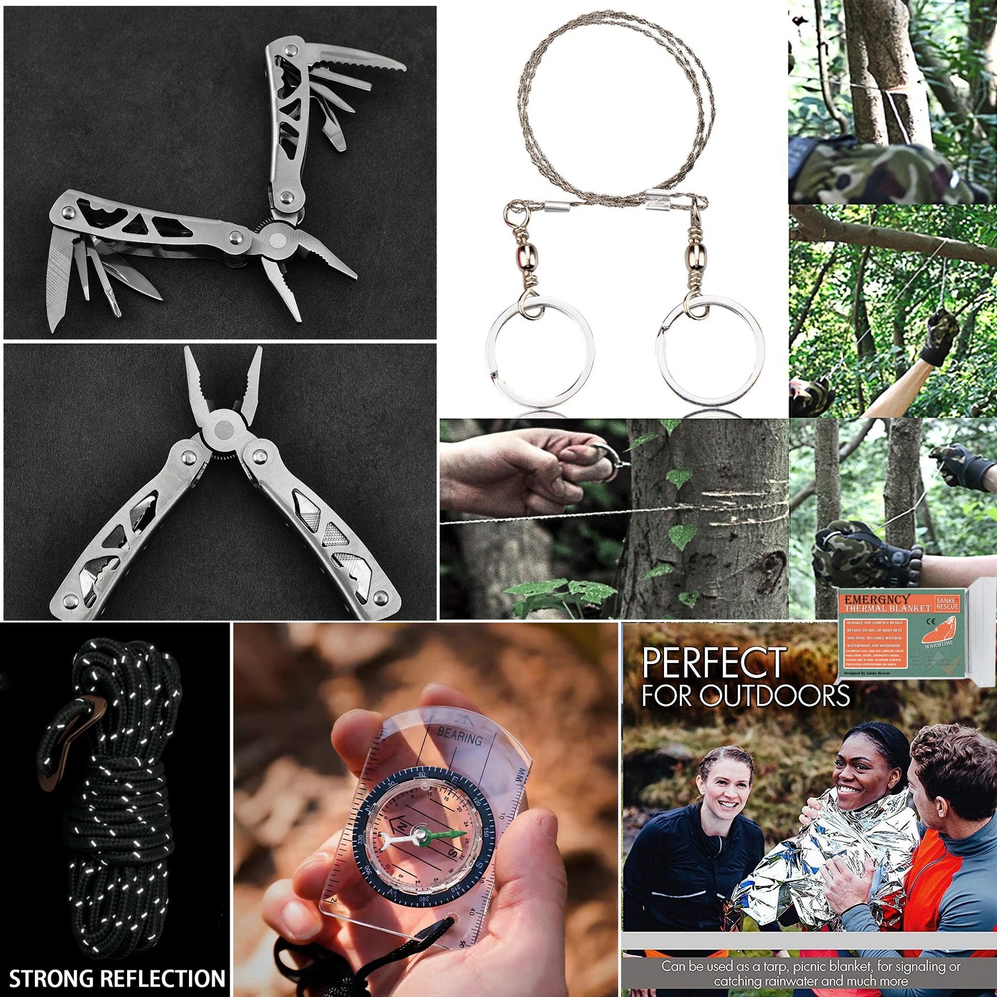 - 24 types in one Survival Kit: a comprehensive assortment of essentials to cover common injuries and scenarios on the move.